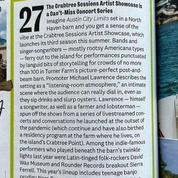 We are honored to be featured in Downeast Magazine’s “101 Reasons to Love Summer in Maine”. The buzz is really starting to build about what is going on here at Crabtree Sessions. We’re very thankful to Downeast Mag for the great write up! 🙏🏽